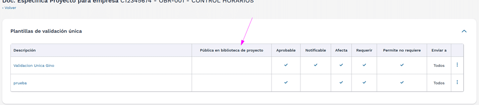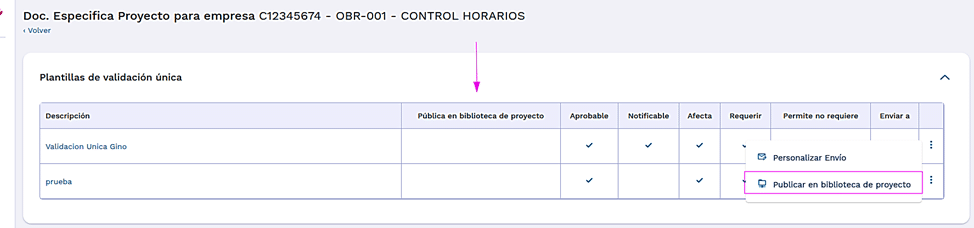 En el menú de acciones de cada una de las plantillas, tenemos la opción de publicar en biblioteca de proyectos