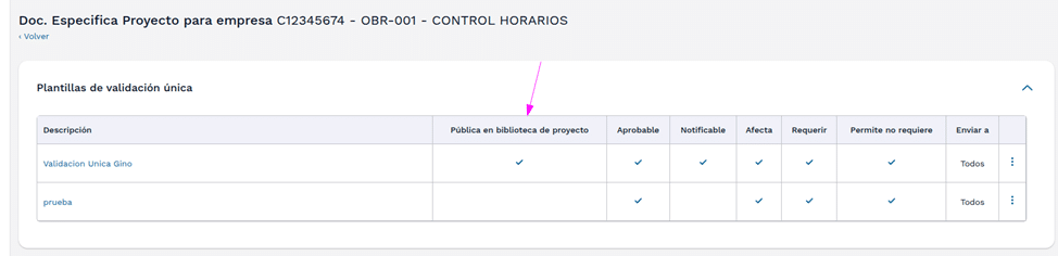 Y nos aparecerá el check en la columna correspondiente indicando que está en la biblioteca de proyecto de manera pública