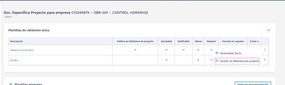 En el menú de acciones, si la plantilla está pública, tendremos la opción de ocultarla