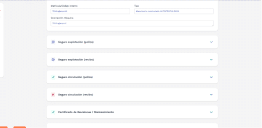 2. En la misma pantalla, en la carga de documentación de maquinaria