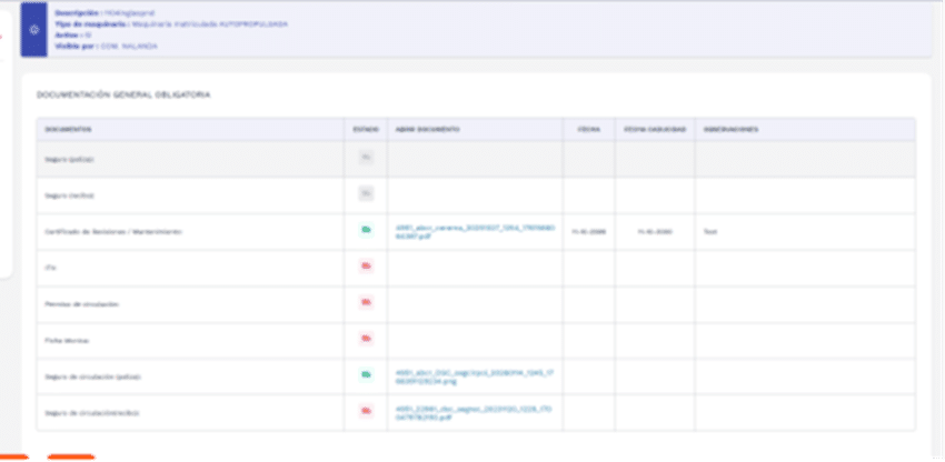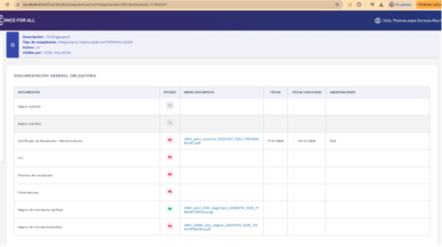 2. En la misma pantalla, en la carga de documentación de maquinaria